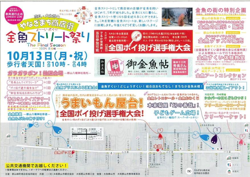 全国ポイ投げ選手権大会、フリーマーケット、ガラポン秀長さんクイズラリー、うまいもん屋台等、